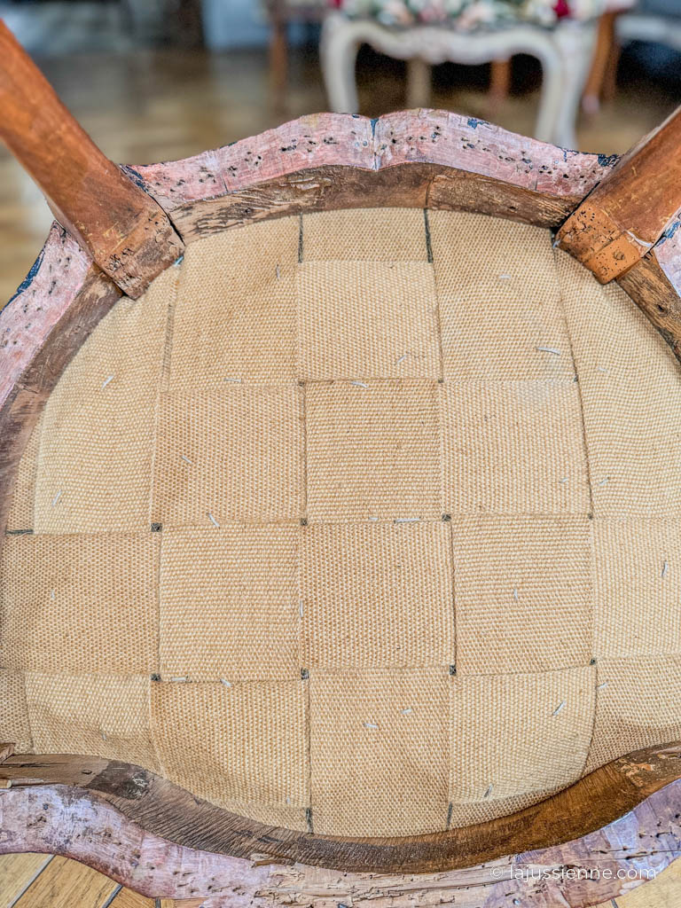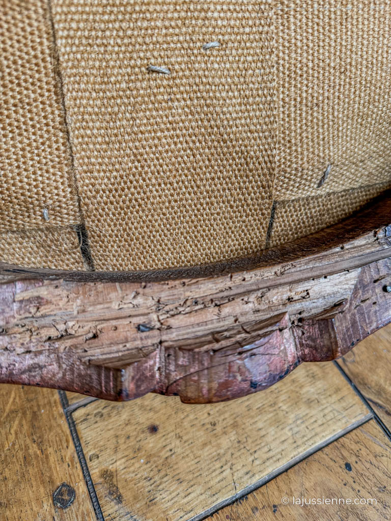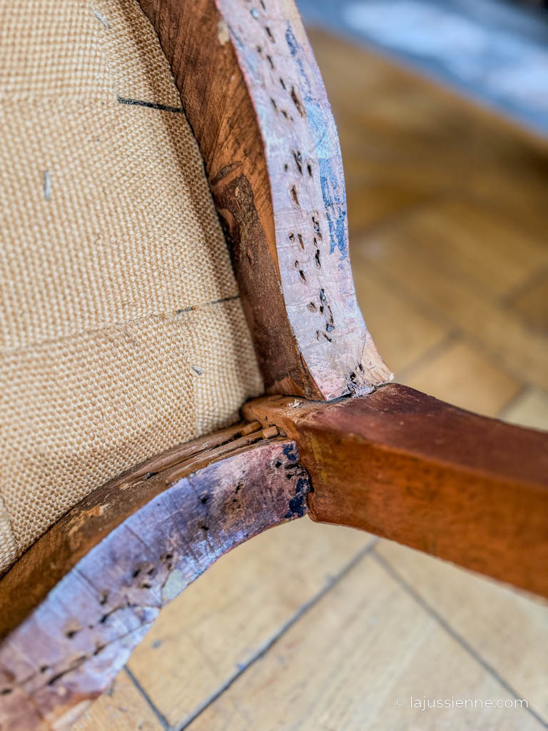 Les pieds cambrés, qui soutiennent gracieusement l’ensemble du fauteuil, ont été restaurés pour garantir leur solidité et leur durabilité, tout en respectant l’authenticité et le charme d’origine de la pièce.