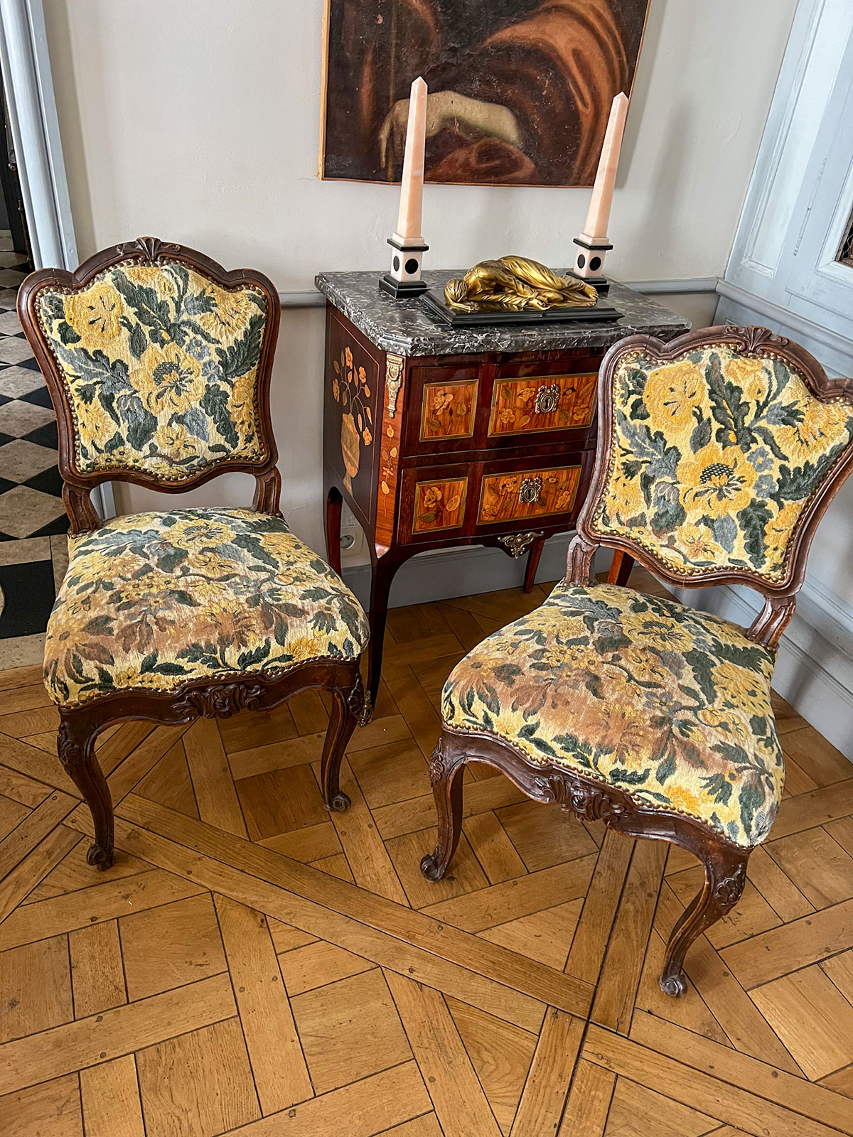 Elégantes et rare paire de chaises d’époque Louis XV – travail italien.
